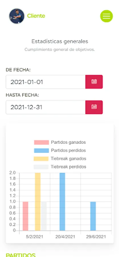 In My Tennis Diary you can register your daily information while enjoying the sport.