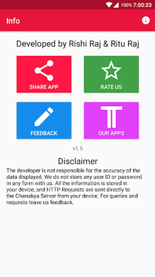 We've got you covered. We do not log your username or password and all your data is stored in your phone. The app basically sends HTTP Requests to chanakya server without any middleman interference, making it fast and secure.