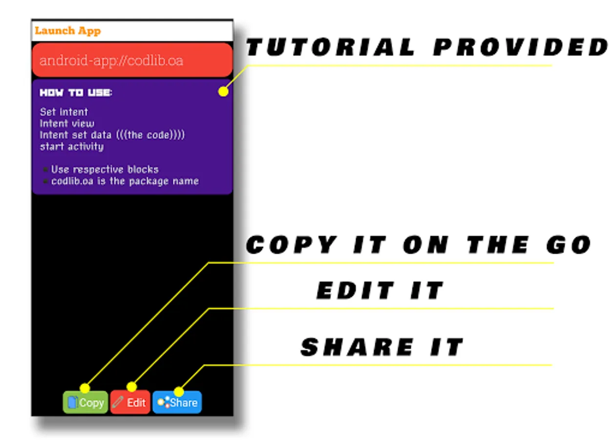 Great interface and extremely pleasant UI combined with lots and lots of usefull codes which can be Edited,Error Checked and Shared make this app the one way direct install