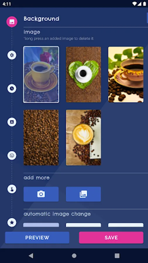 Create your own themes by adding clocks, frames, emoji, animated coffee beans, magic touch to the background changer, or even make it a 3D wallpaper or 4D wallpaper (parallax wallpaper with parallax effect). It works on the lock screen too!
