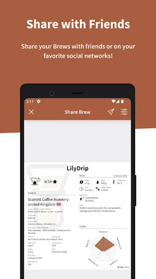 You can share your Brews with your friends or on your favorite social networks. Every Brew has a square share image format that you can easily upload to your social media channel.