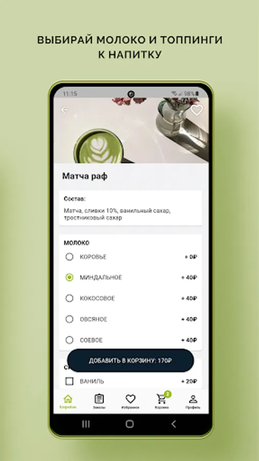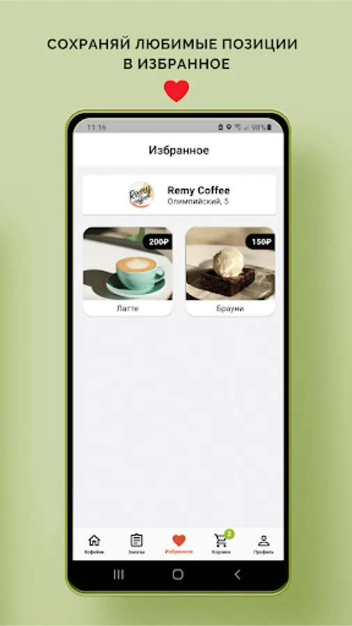 Ordering coffee in your smartphone is just a couple of clicks. For example, you can add a cappuccino with your favorite croissant to your favorites and place an order with the click of a button.