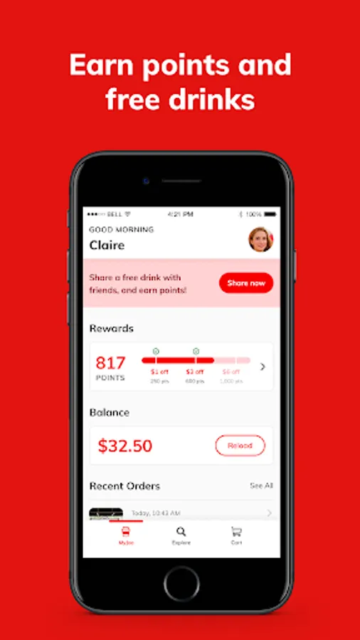 With every order, you earn points that can be redeemed for free drinks and deals anywhere on the network. You’ll also receive deals, discounts and promotions that you can use to save money and discover new experiences.