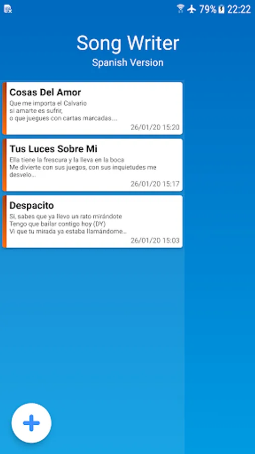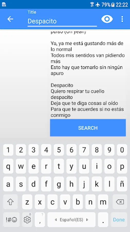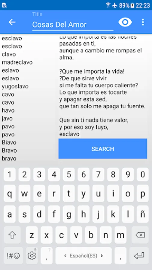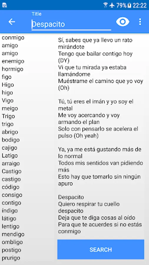 This app act like rhyme finder for Spanish words, you can write song for rapping , romantic, pop music etc.
