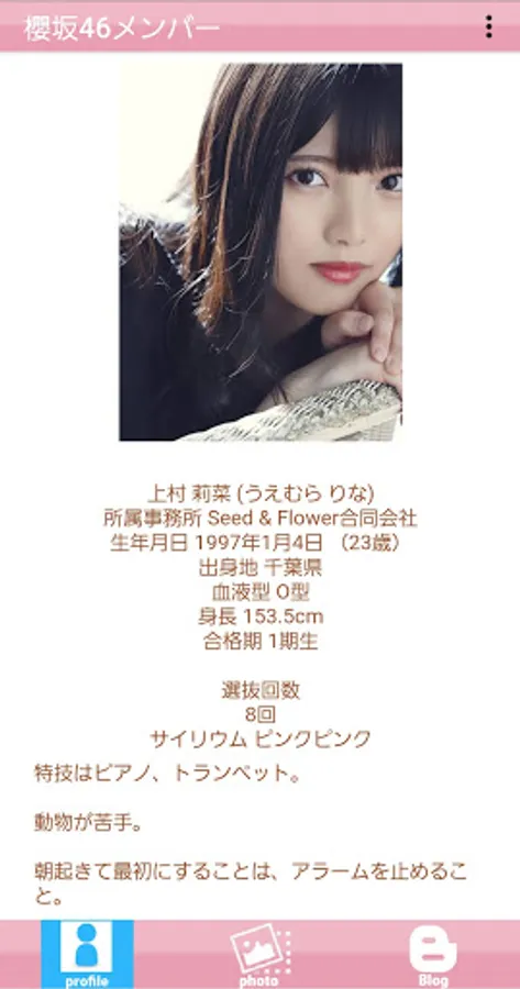 It is a comprehensive app of Sakurazaka46 that can display the image gallery, profile, blog of all members of Sakurazaka46, news about Sakurazaka46 and timeline of blog.