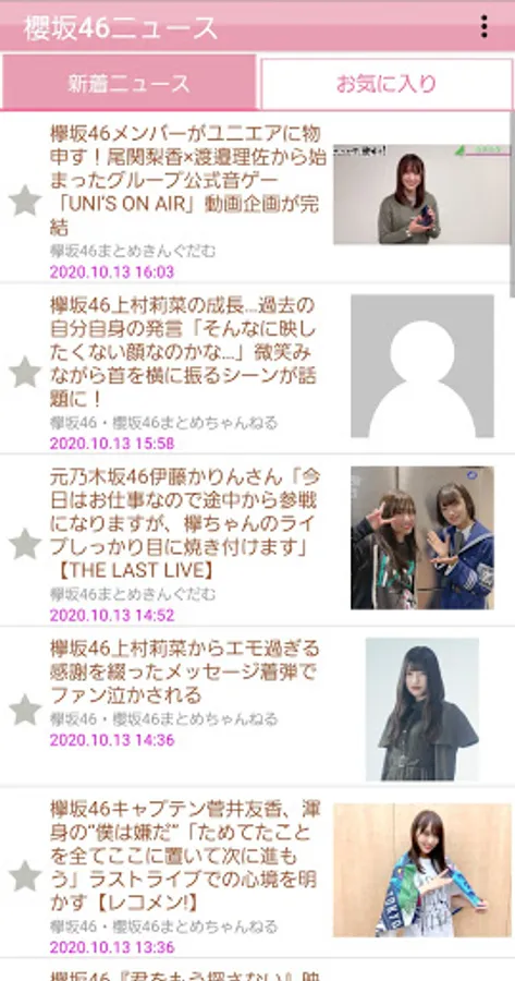 ・ Tap each article ☆ mark in the "Sakurazaka News" list to register it as your favorite article. Registered articles can be viewed from the "Favorites" tab.