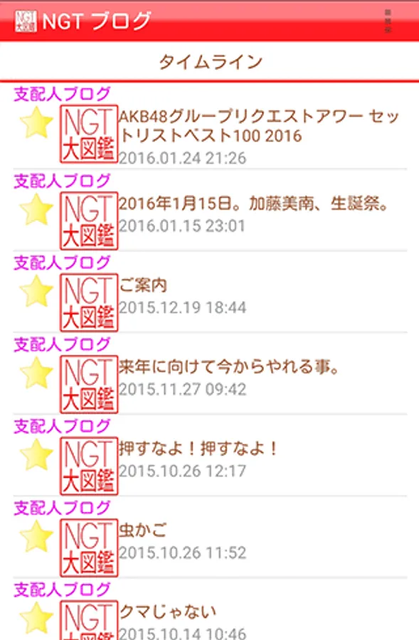 ・ Automatic timeline display of each article from "NGT 48 news list", "official blog", "official Twitter" menu