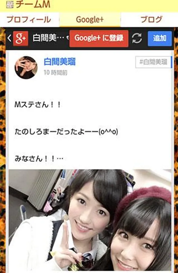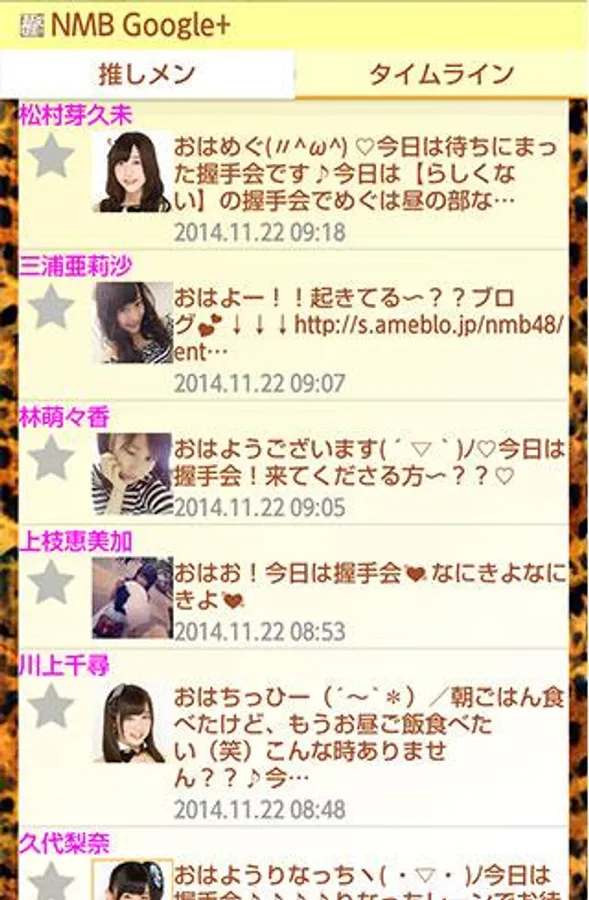 ・ Automatic timeline display of each article from "NMB news list", "member blog list", "Google+ list" and "Twitter list" menu