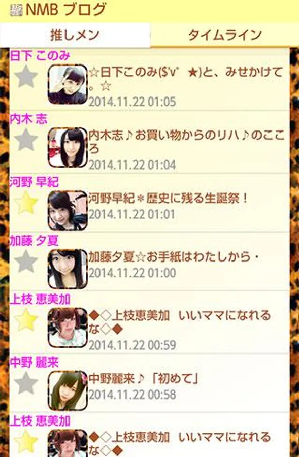 ・ In "Member's Blog List", "Google+ List", and "Twitter List", if you tap each member's ☆ mark, it is possible to register recommended men. Display timelines for members registered in the "Push Men" tab only. As there are fewer recommended members, the processing speed will be improved, so make good use of them.