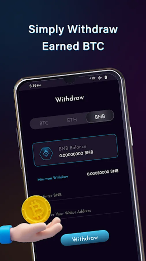 Start BTC mining immediately with BTC Mine app.