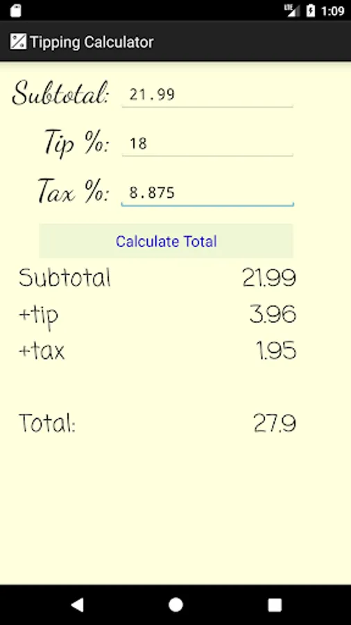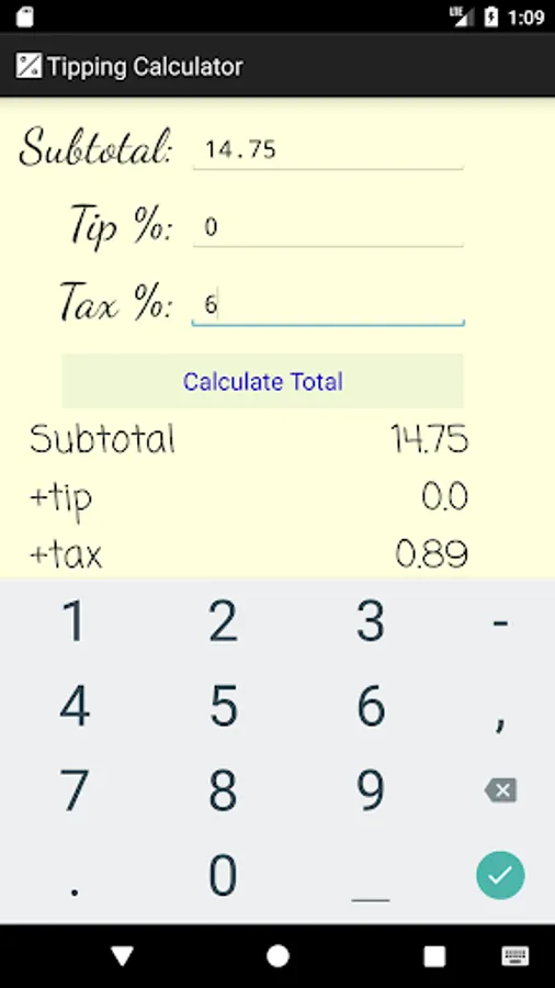 Can you do it in your head? Neither can I. That's why this app is so useful. Quickly and painlessly calculate the total by entering the price, tip, and tax, and the app does the rest of the work!