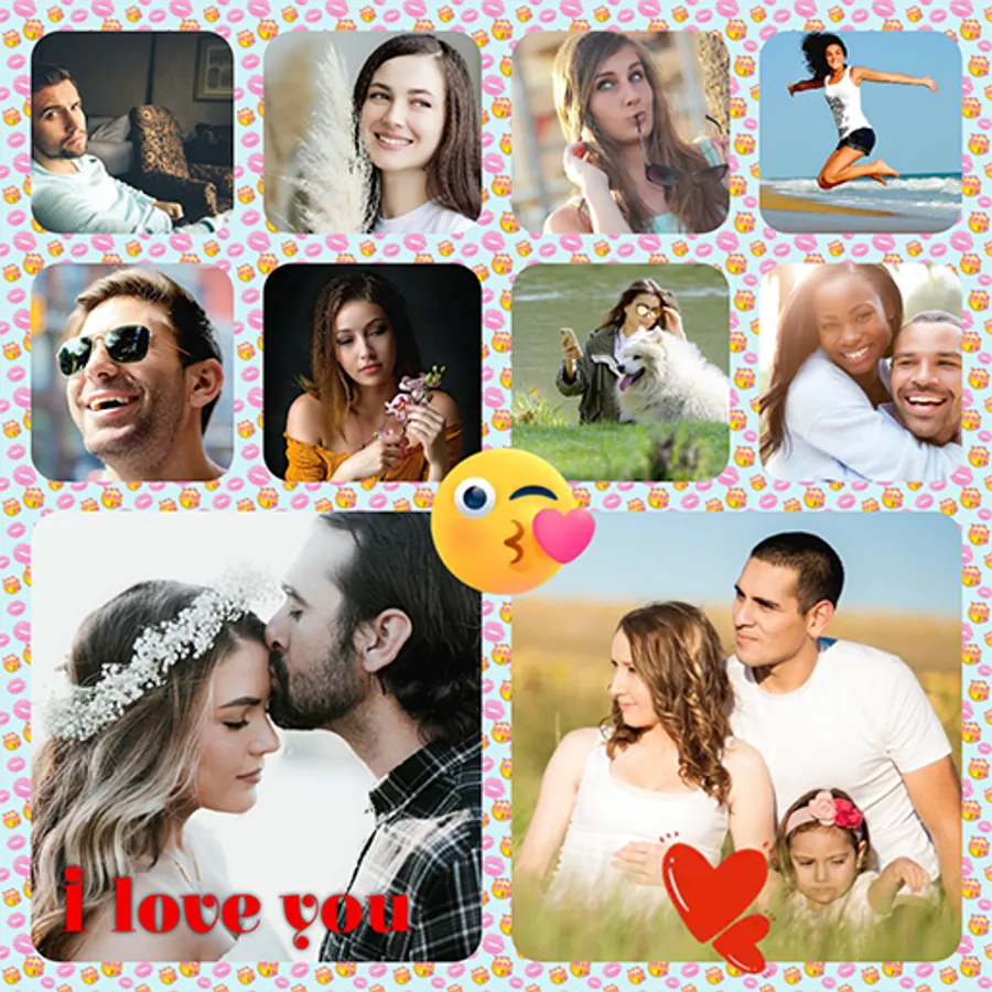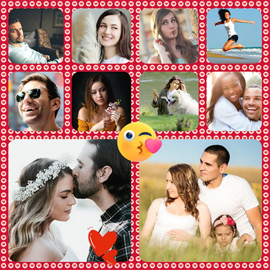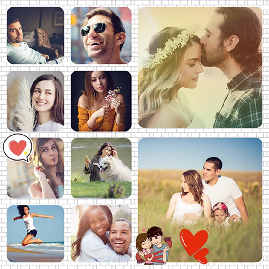 • Collage Layouts in different shapes, sizes, styles! Mix-match your pics, rotate, move and set them up just about any way you like!