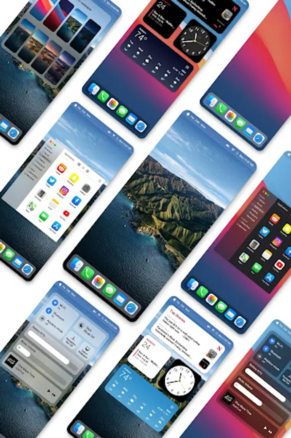 -In Nova launcher make sure you have exactly the amount of pages that the preset you selected requires (each preset has a short description that tells you how many pages it needs), hide dock, (for BigSurHome hide the notification bar). If you don't have exactly the amount of pages the preset requires, it will not work properly. This part is very important. In Nova launcher, on your he screen, press and hold the screen, and then you will have the option to add/remove screens so you can get the exact amount you need)