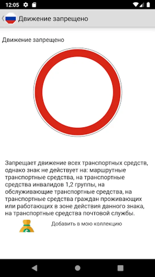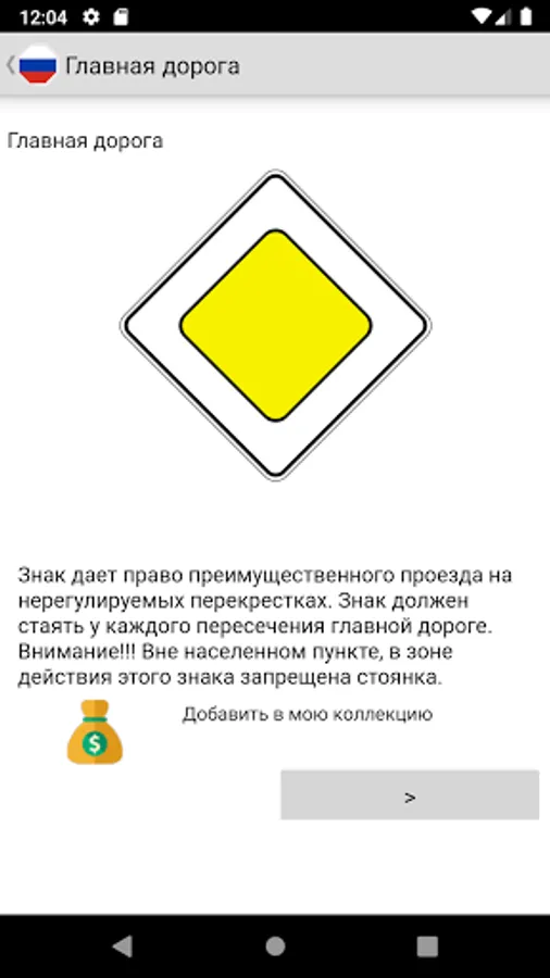 You can add signs to your favorites, as well as test your knowledge with a simple test.
