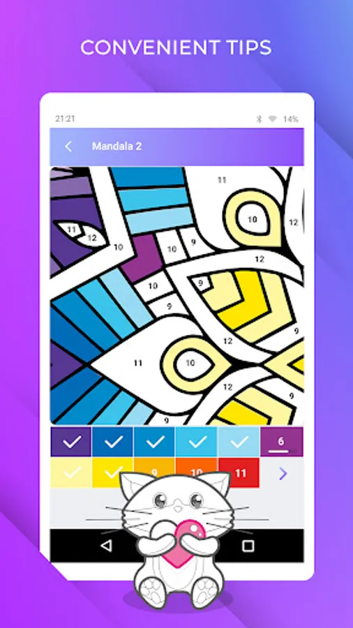 No need to worry if drawing has never been your strongest point! You won’t have to worry about what color or palette to choose - each color in the app has already been selected by a team of professional designers and is indicated by a number. And convenient tips will help you find even the smallest sectors! As a result you are guaranteed to get a masterpiece!