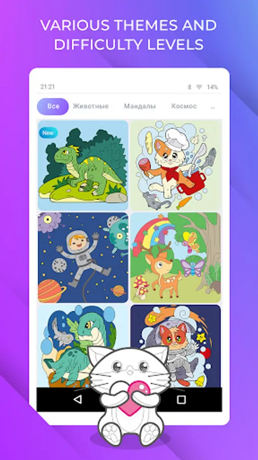 We paid special attention to the ability to customize the app for yourself. So the app has different difficulty levels for painting by numbers. Choose any difficulty you find suitable and color pictures only of a given complexity: whether it’s a simple image of a bunny for training your drawing by numbers skills or a complex mandala for professionals!