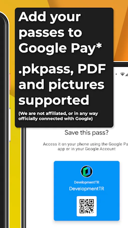 With Pass2Pay, you will be able to import passes of all kinds, like they pkpass format (Apple Passbook), from a PDF file or directly from a photograph. Once read, they are sent to your preferred service, either Google Pay or Huawei Wallet, so that you can consult and use them from all your devices.
