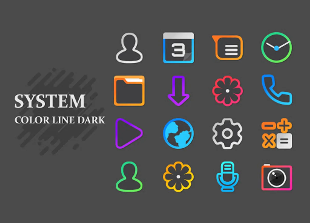 * The icon pack is unique in itself because it has Dark icons with colorful outlines, so each and every icon has two or more color combination.