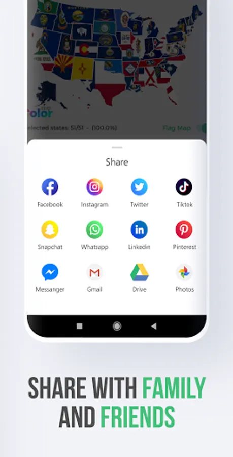 - Sharing: each generated map can be shared in the social media platforms with friends and family.