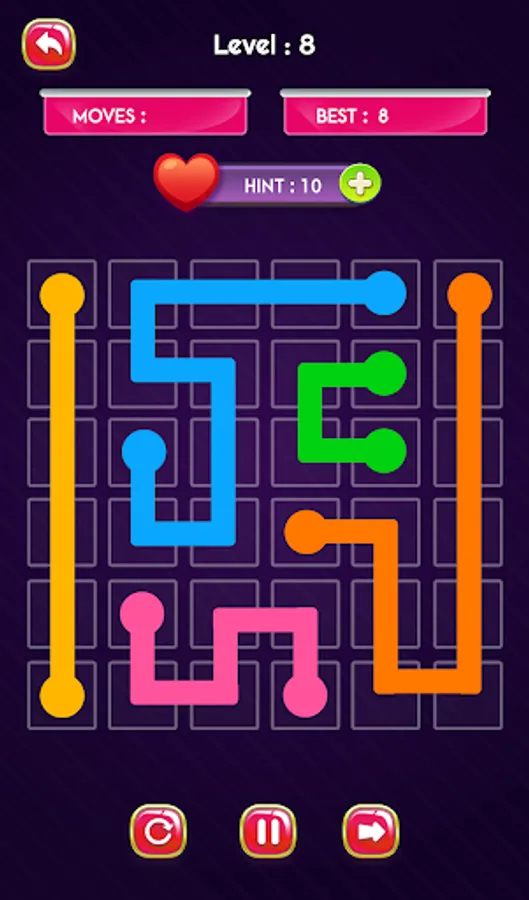 Connect Dots is basic game, where you want to connect dots with a line to make flow or a line. Be cautious when you draw a flow , not to cross another flow. In this Connect dots game you really want to draw Color Line so it covers the board. Pipes Color Line will cover the board then it will involve all the board.