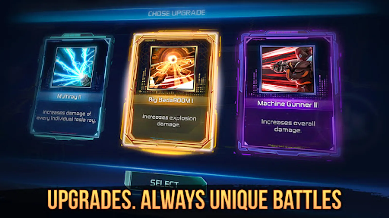 4 types of weapons - Turbolaser. Plasma, Tesla, Dark matter.