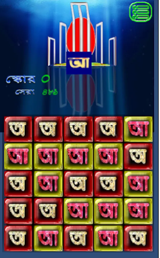 - The highest number of blocks (cells "A" to "ঔ" in order) indicates the level of the game. The main goal is to reach level "6".