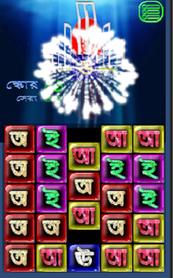 - Tap any 2 or more adjacent letters of the same letter, the same letter associated with that letter will merge into that cell and that letter will change to the next letter. For example: 2 or more "a" will be "a" ... 2 or more "a" will be "e" .. thus going to "হবে".