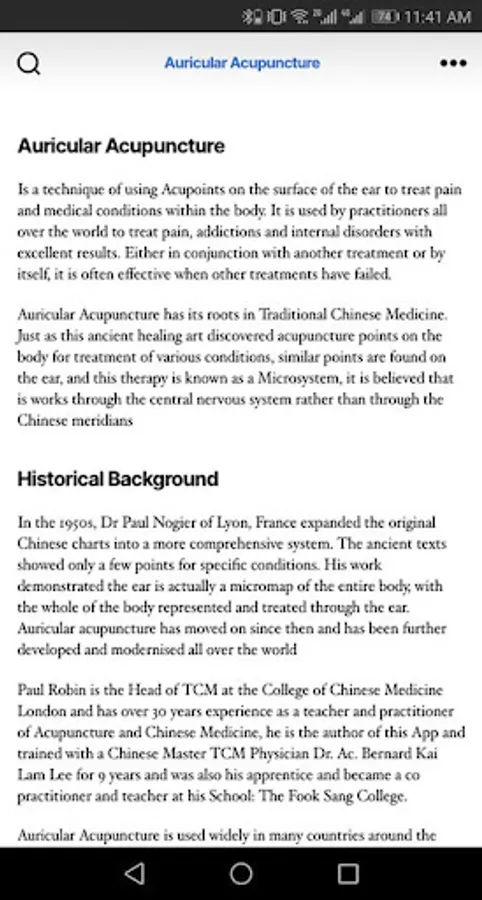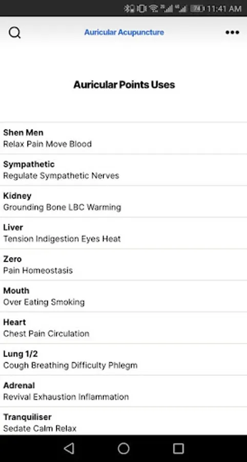 This auricular acupuncture App is designed to give auricular acupuncturists and students quick usable access to useful formulas suitable for conditions commonly seen in clinical practice.