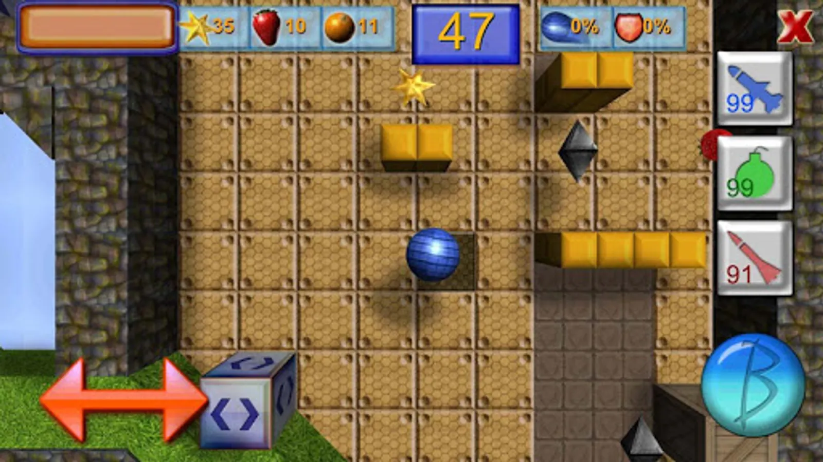Control the ball towards the exit of the labyrinth. Get weapons to destroy walls or move traps. Make the Ball drag objects and get keys that opened the passageways to a new level.