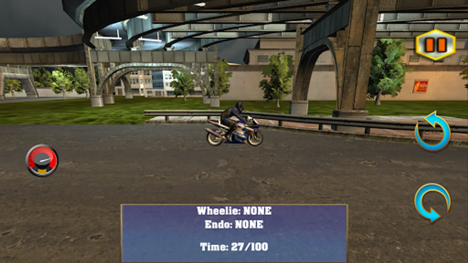 Each Level has objectives that must be completed then you are able to play next Level that includes: Wheelie time, Endo, Wheelie.