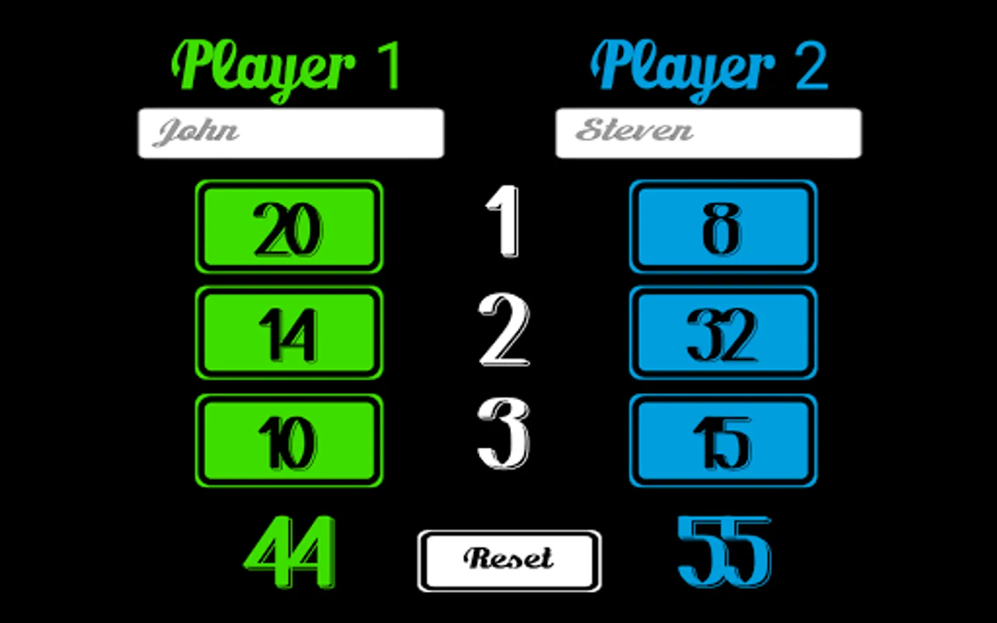 Optionally enter the players names and for each "Lost Cities" set, simply select the cards played by each one for each color. Each colors score is shown in the calculator as well as the total for the current set. At the end of the lost cities card game, each player's total is calculated and shown as well as the scores for the individual sets and individual cards.
