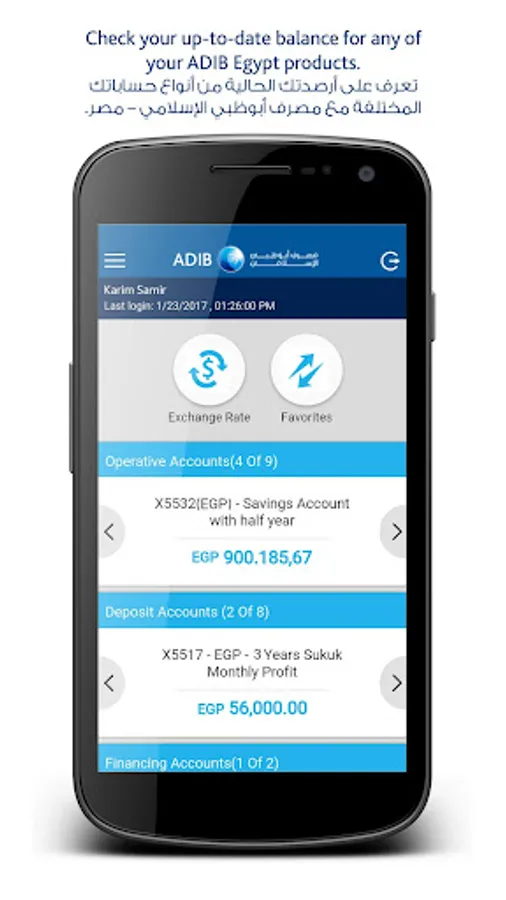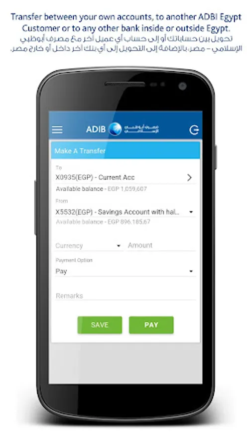 ADIB Egypt Mobile is the Mobile Banking service offered for individual customers of Abu Dhabi Islamic Bank – Egypt. It offers a secure, simple, fast and convenient banking experience through your smart phone or tablet.