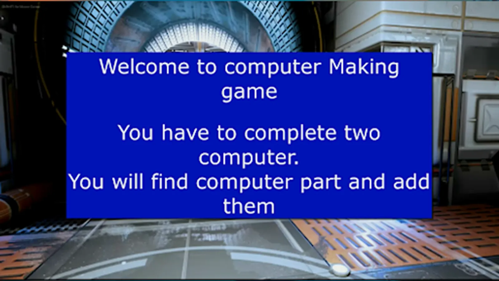 computers in a level. Player should build the computer using money. From the start, those computers are unfinished and player have to add different park. Player can buy each computer part from the main computer. When they buy any part then it will automatically attach to the computer. You can also see the name of the part and details about it. When all the part attach with the computer then Computer will start to function. This game in good for learning and assemble education. Player are able to control the player movement towards right, left, forward, back. I have plan to upgrade this game. This game has only one level