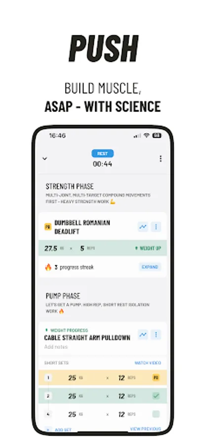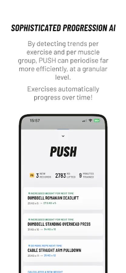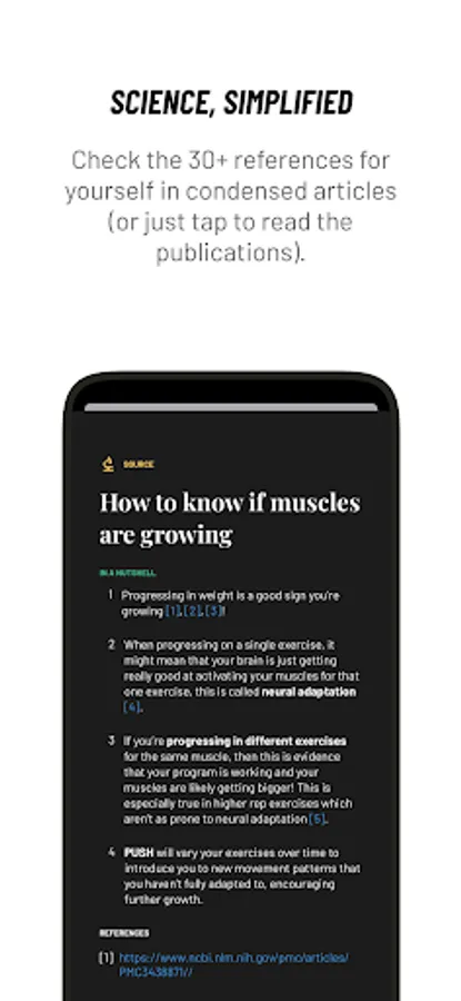 PUSH is about building muscle as fast as possible - with science. We achieve this with an AI built on published research. You don't have to take our word for it, you can tap the referenced articles throughout the app as you use it (just look for the yellow microscope).