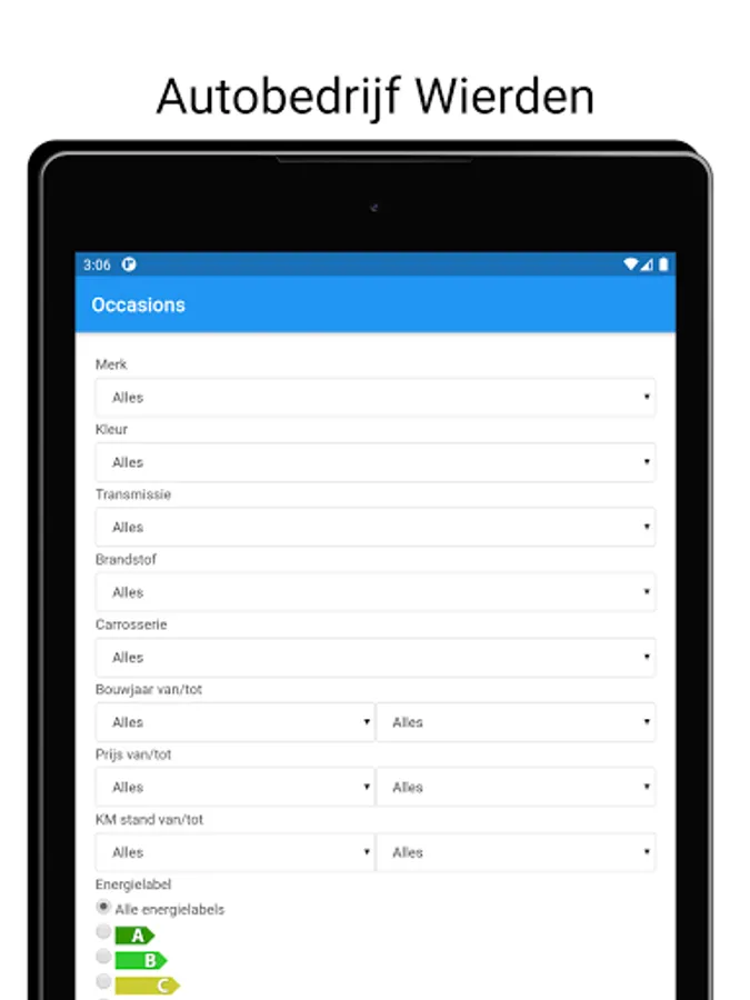 Stock of cars for sale at Autobedrijf Wierden via this app.