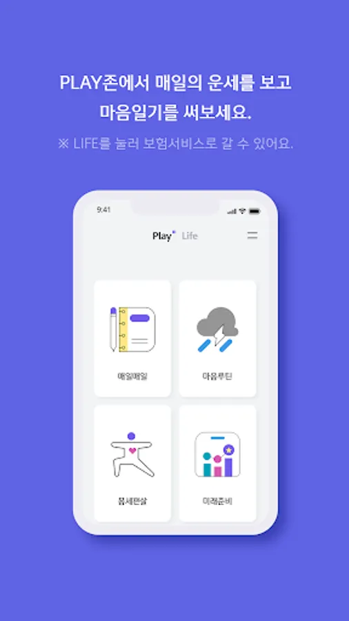 There is a Life zone where you can easily use various tasks such as contract inquiries, loans, and insurance claims, and a Play zone where you can view today's fortune and record your daily thoughts.