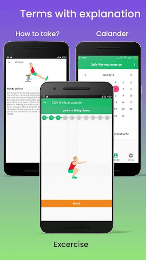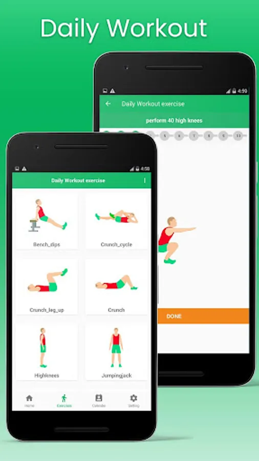 A simple and lite daily exercise app to keep you in shape on the go. You can choose from up to 3 training difficulties. It includes visual animations of each exercise, a calendar to track your workouts, a timer and more...