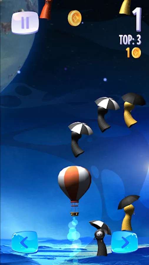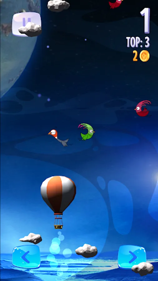 In the Birds level, fluffy clouds are inhabited by a flock of mischievous birds. They swoop and dive, testing your reflexes and agility. Dodge their playful antics and ensure the balloon soars through the clear blue sky unscathed.