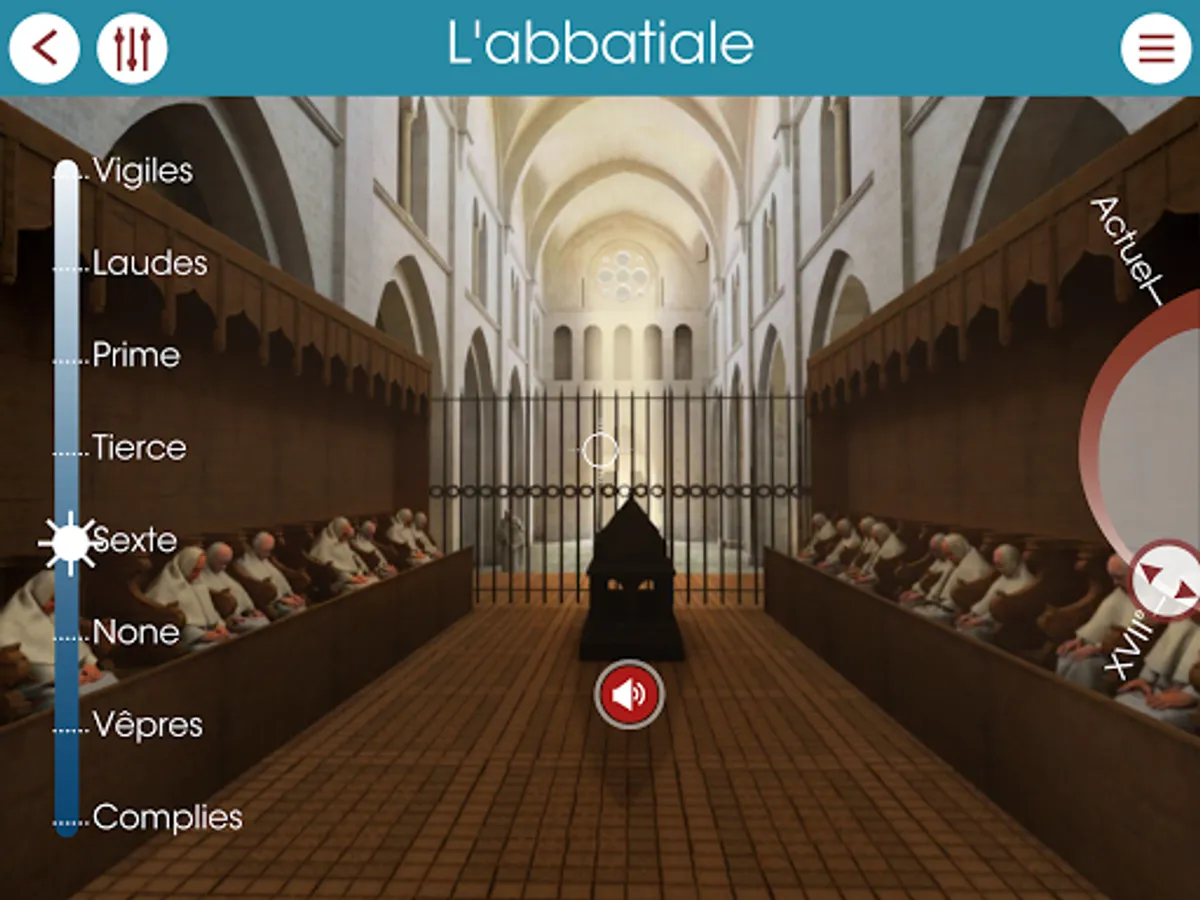 The abbey is rendered in 3D to three times the sixteenth, seventeenth and eighteenth centuries. It's a real time travel is proposed augmented reality to visit the square, the gardens, the cloister and the abbey before their destruction.