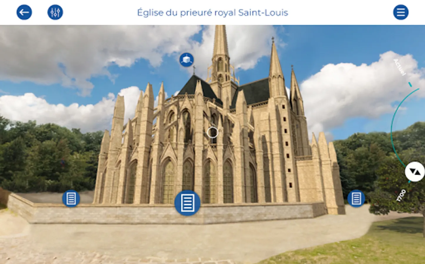This application will allow you to live an immersion experience, with the 3d reconstruction of the imposing Priory church, an exceptional heritage that is now completely extinct: one of the most beautiful jewels of French Gothic art and culture in Île-de-France. of France.