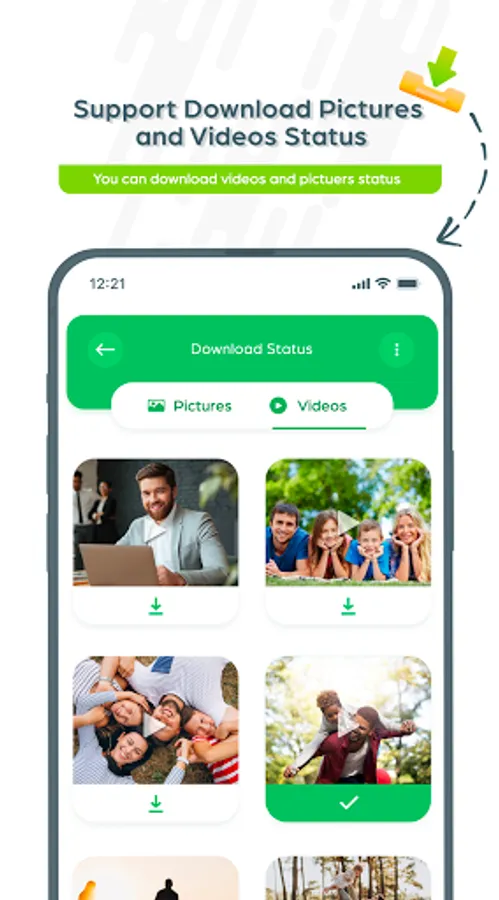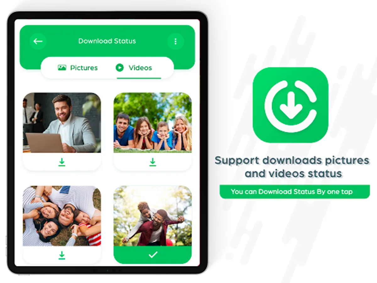 • You can save and download statuses of photos through the Status Video Downloader without Internet, all you need to do is choose the image you want to download and then press the download button by Status Saver.