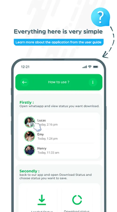 • You do not need to provide an internet connection in order to be able to use the application to withdraw status, as the Status Saver does not depend in its work on the presence of the Internet because once you see the stories or Status our application will be able to download them.