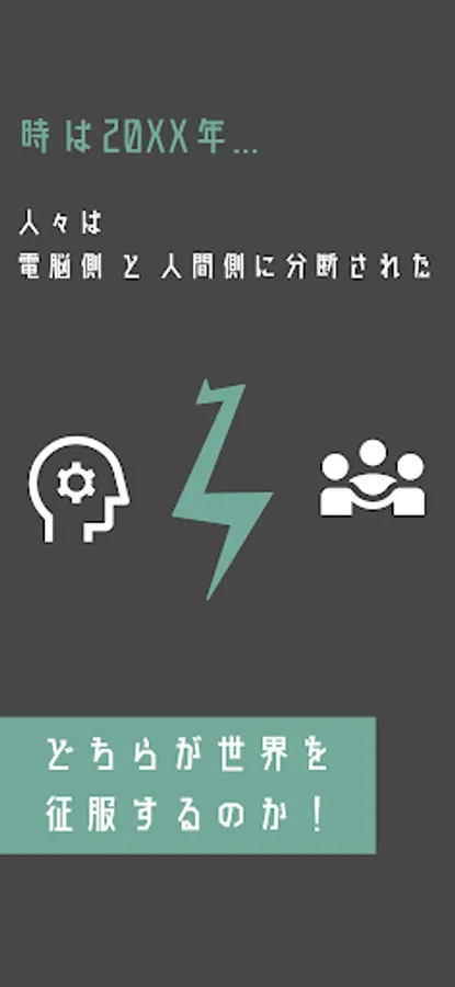 The year is 20XX, and the people are divided into the human side and the cyber side. Which side will conquer the earth? This game is a new game that is a combination of AIx Werewolf x Word Wolf. A topic will be presented and discussed. The human side guesses who is the AI, and the computer side tries to prevent the AI from finding out who it is.