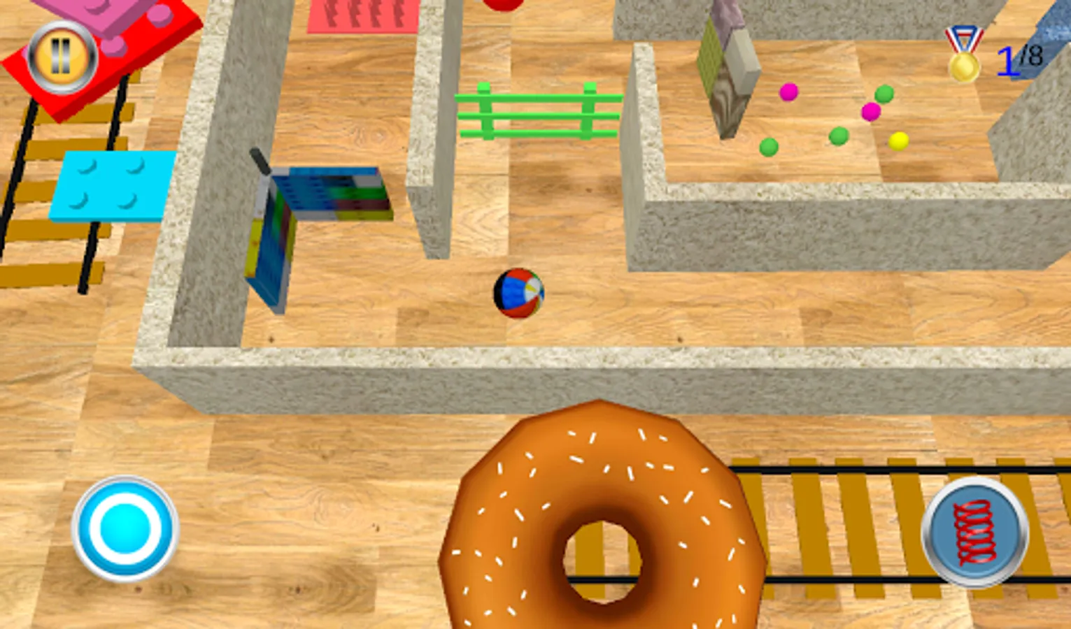 On the floor between the scattered toys you have to go through a maze of obstacles, traps, collect points and unlock new levels. Good luck!