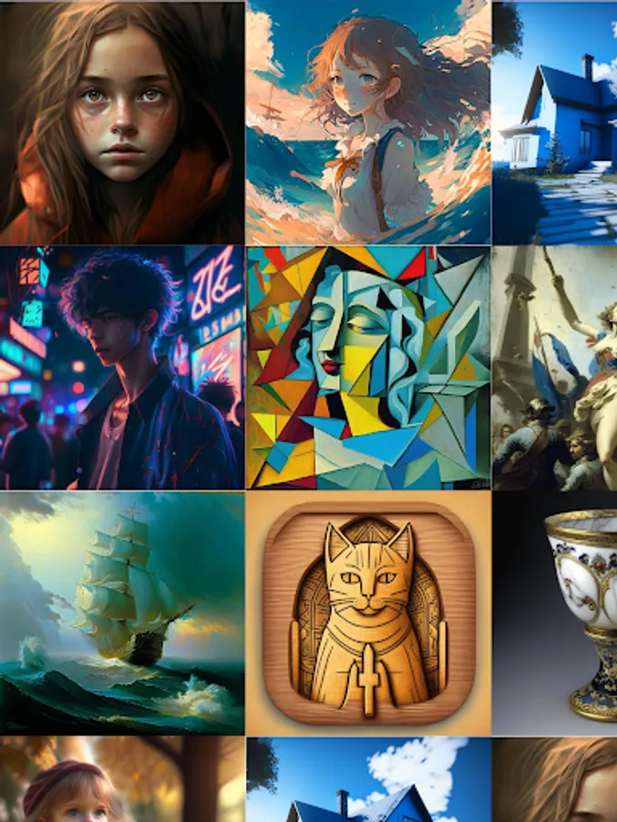 1. choice of image generation models: More than 15 image generation models are provided in this AI image generation app. It can generate Art in different styles and genres, such as cartoon, portrait, cyberpunk, 3D renderer, Renaissance, Picasso, oil painting, pencil drawing style, classical art, Ivazovsky, digital painting, cartoon, detailed photography, studio photography, iconography, etc. Users can choose the appropriate model according to their preferences and objectives.