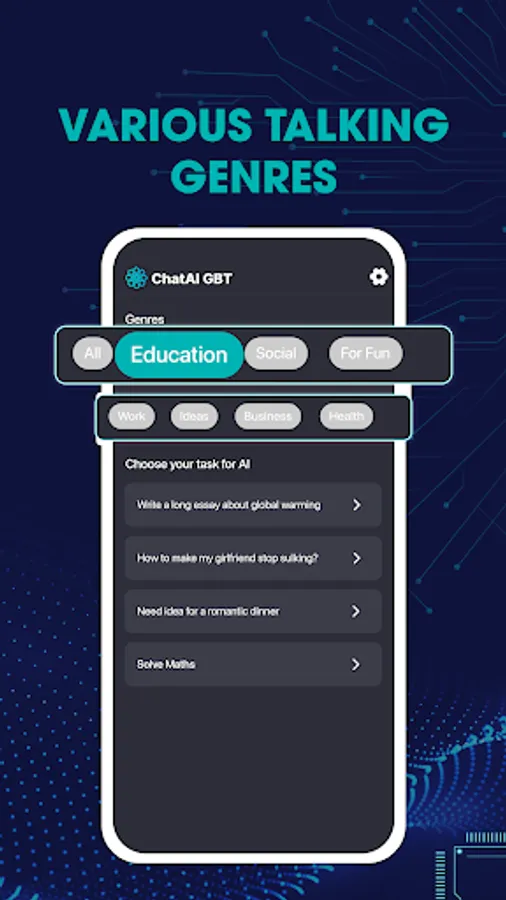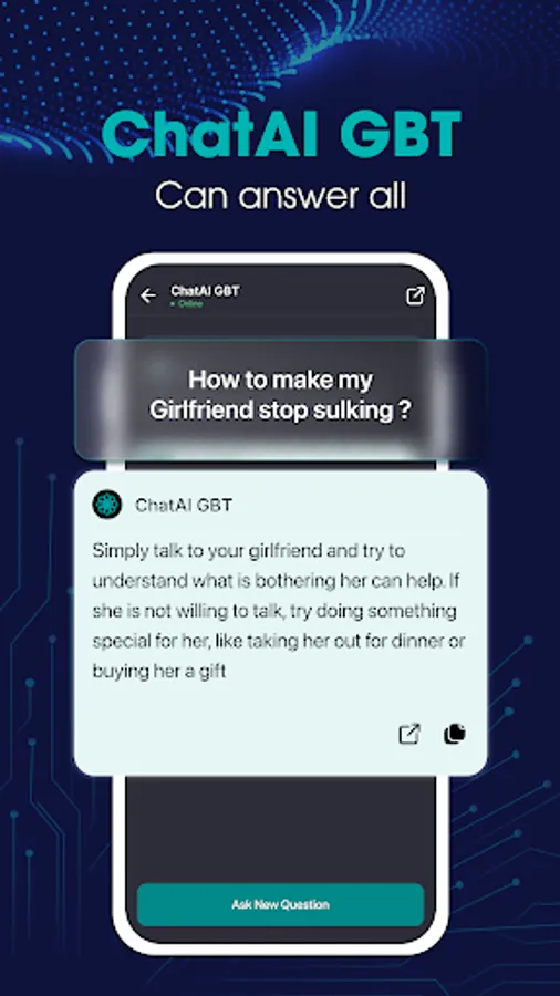 Our app is an AI friend to talk to. Chat GBT uses machine learning algorithms to learn from your interactions, making it more able to adapt to your needs, better understand your preferences, and then tailor the app's responses tailored to suit your specific needs. In order to make it easier and more convenient for users to exchange information or chat with AI chatbot, our chat GBT AI also supports many different languages. It also helps AI GBT chat become more and more effective as a companion for anyone in need of a virtual friend. Example, if you want a virtual boyfriend or an online therapist, get this app now.