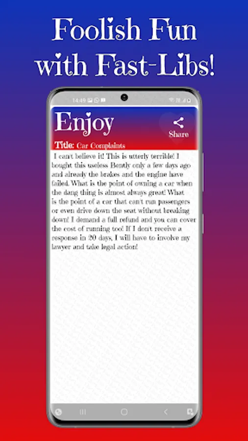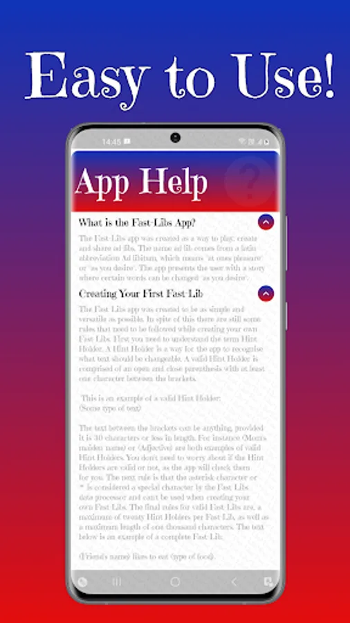 The Fast-Libs app was created as a way to play, create and share ad-libs. The name ad-lib comes from a Latin abbreviation Ad libitum, which means "at ones pleasure" or "as you desire". The app presents the user with a story where certain words can be changed "as you desire".