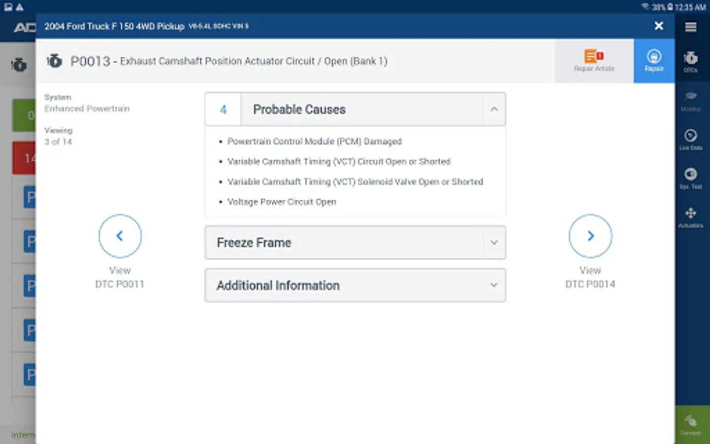 - DTC’s and Freeze Frame read from vehicles link directly into the specific diagnostic articles
