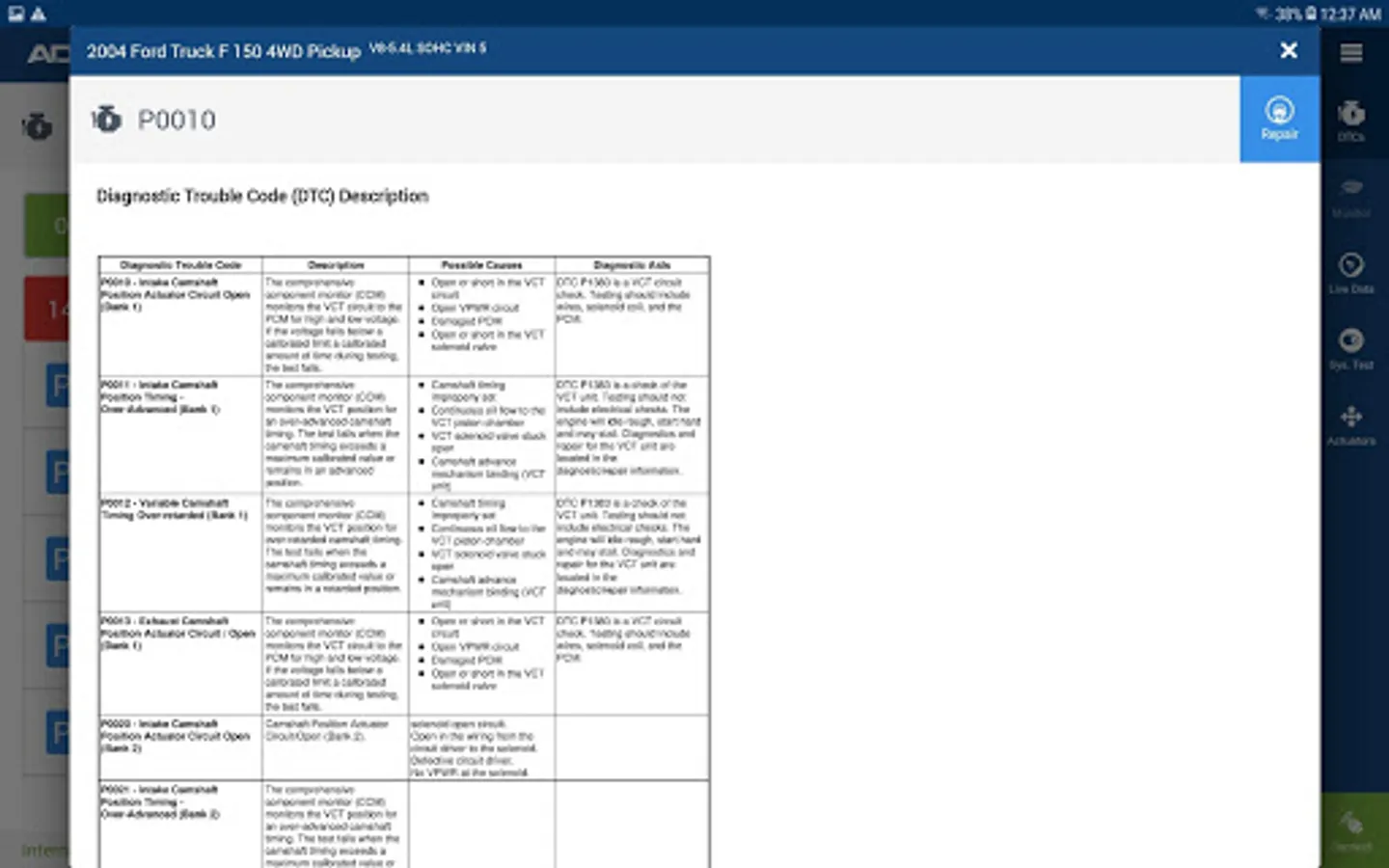 - ALLDATA Mobile decodes VIN through the OBDII Port or using the VIN bar code scanner