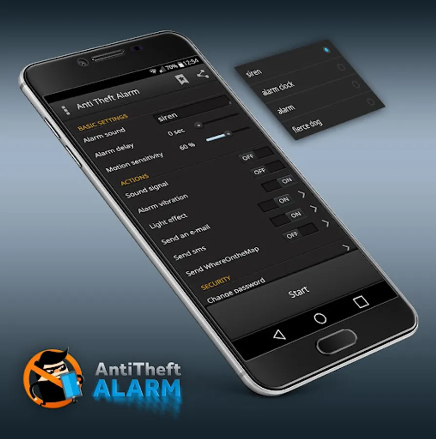 * Alarm SIM - If the thief changes the SIM card on the phone, an alarm will sound when the phone is restarted.